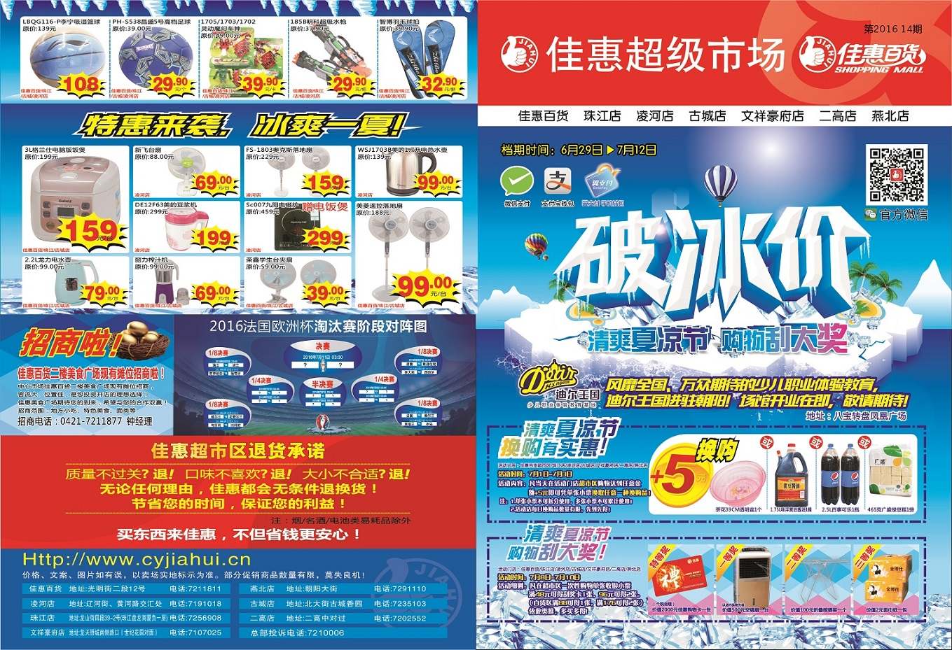 ◎朝陽佳惠超市有限公司 ◎電話:0421-7210006/7206776 ◎地址:朝陽市雙塔區(qū)光明街2段12號 ◎