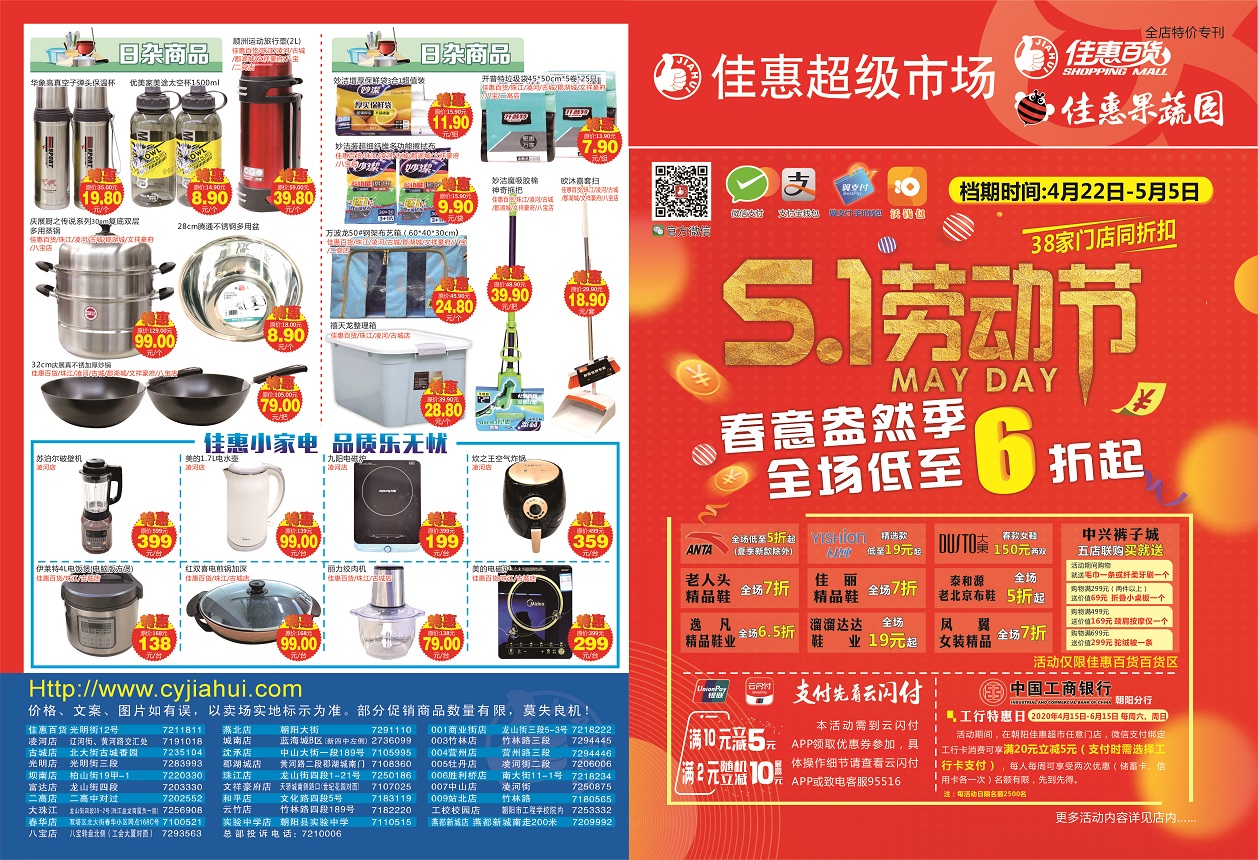 ◎朝陽佳惠超市有限公司 ◎電話:0421-7210006/7206776 ◎地址:朝陽市雙塔區(qū)光明街2段12號 ◎